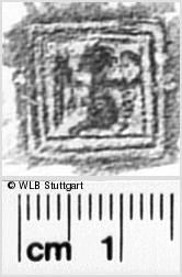 Lukas / Stier, stehend / schreitend, widersehend, mit Spruchband unten