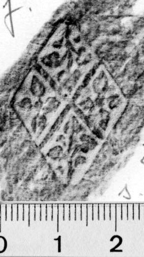 (en) ornaments, geometrical | rhombus | lozenge-shaped bars filled (?) | four lozenges, filled with four-part leaf (?) and lime leaf