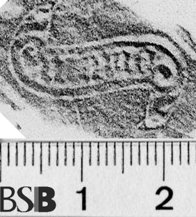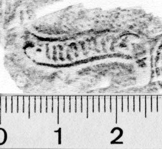 (en) Writing / Lettering | single or several words | Mary | scroll, running from upper left to lower right | with flourish (?)