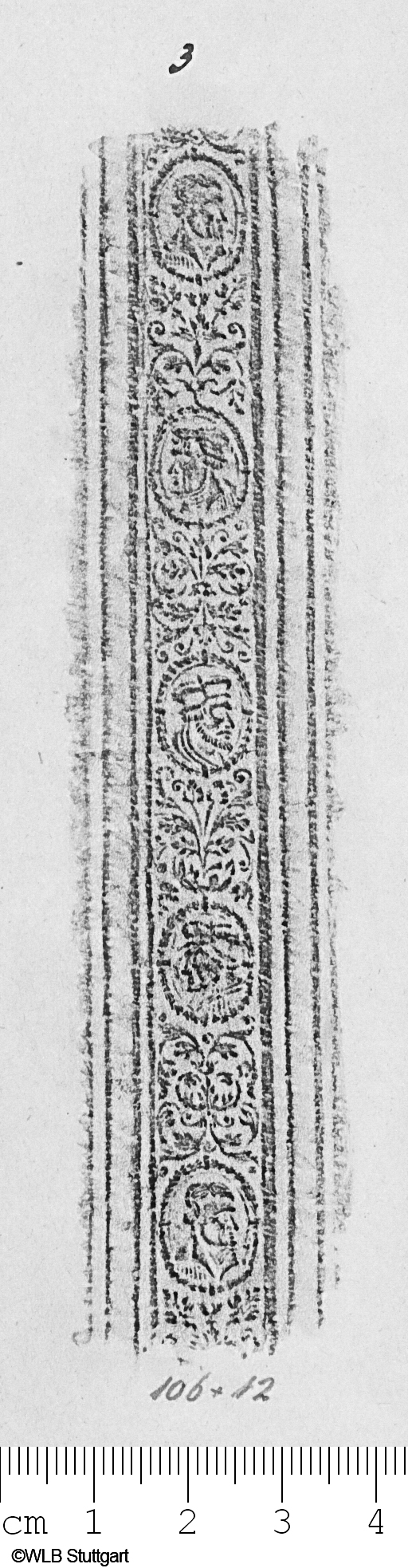 | Literaturverweise: | Kyriss, Ernst: Stuttgarter Buchbinder der Renaissancezeit (1540-1630). In: ZfB 67, 1953, S. 173-191, hier S. 189-191 Helwig, Hellmuth: Handbuch der Einbandkunde. Bd. 2. (Hamburg) 1954, S. 51